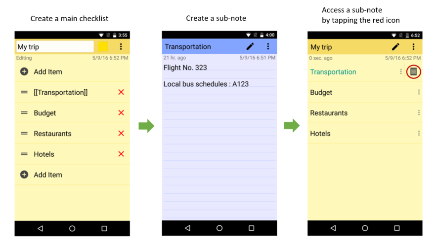 Vous pouvez créer autant de notes que vous voulez. Elles apparaissent sur l’écran d’accueil de l’application à chaque ouverture.